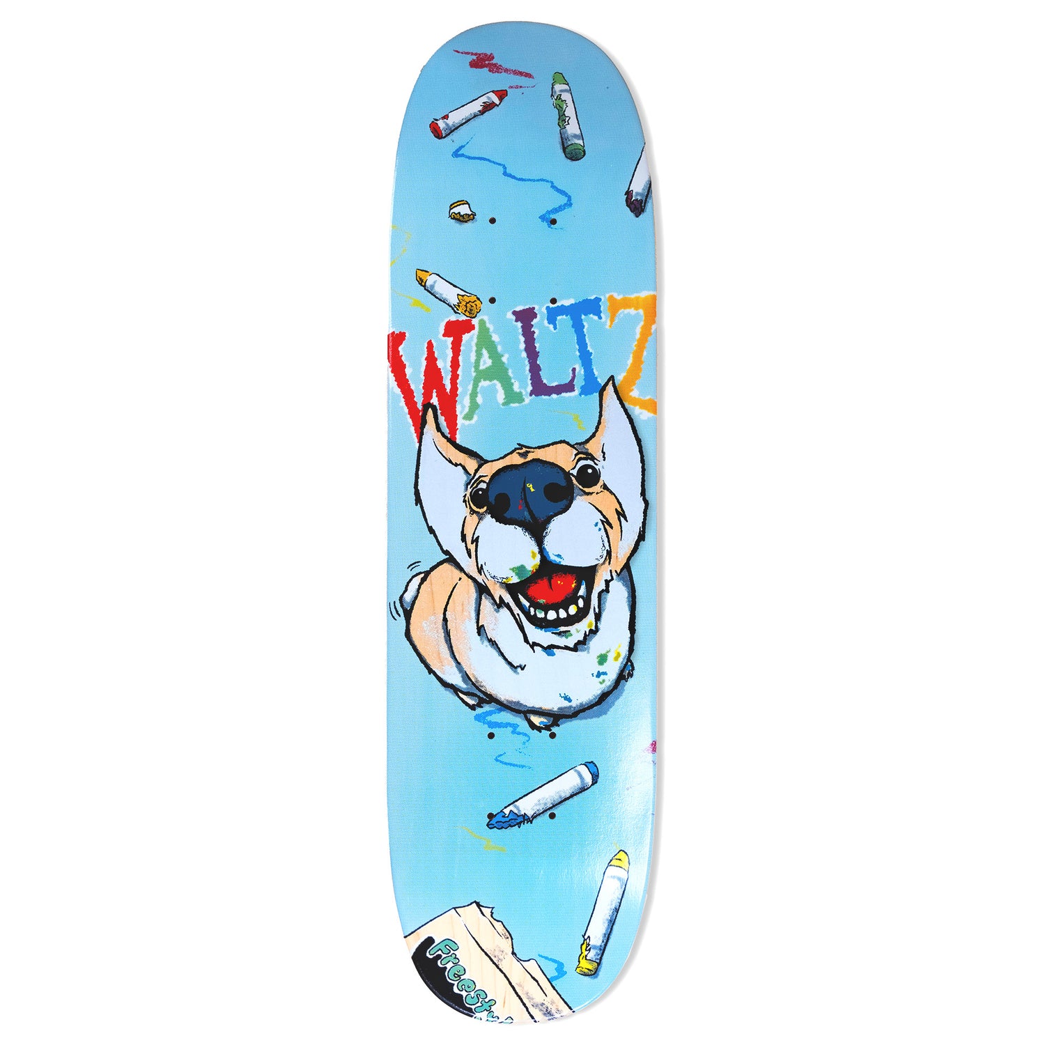 This deck features our Crayon Corgi graphic printed on natural wood veneers.