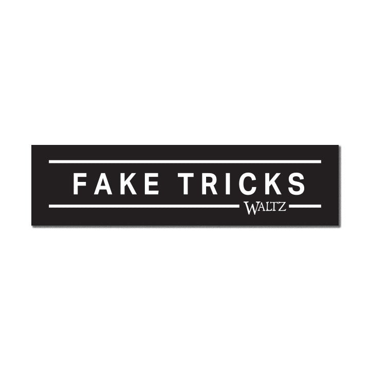 Includes 1 vinyl sticker perfect for indoor or outdoor use. FAKE TRICKS - 5.5" x 1.5" - black ink on white vinyl